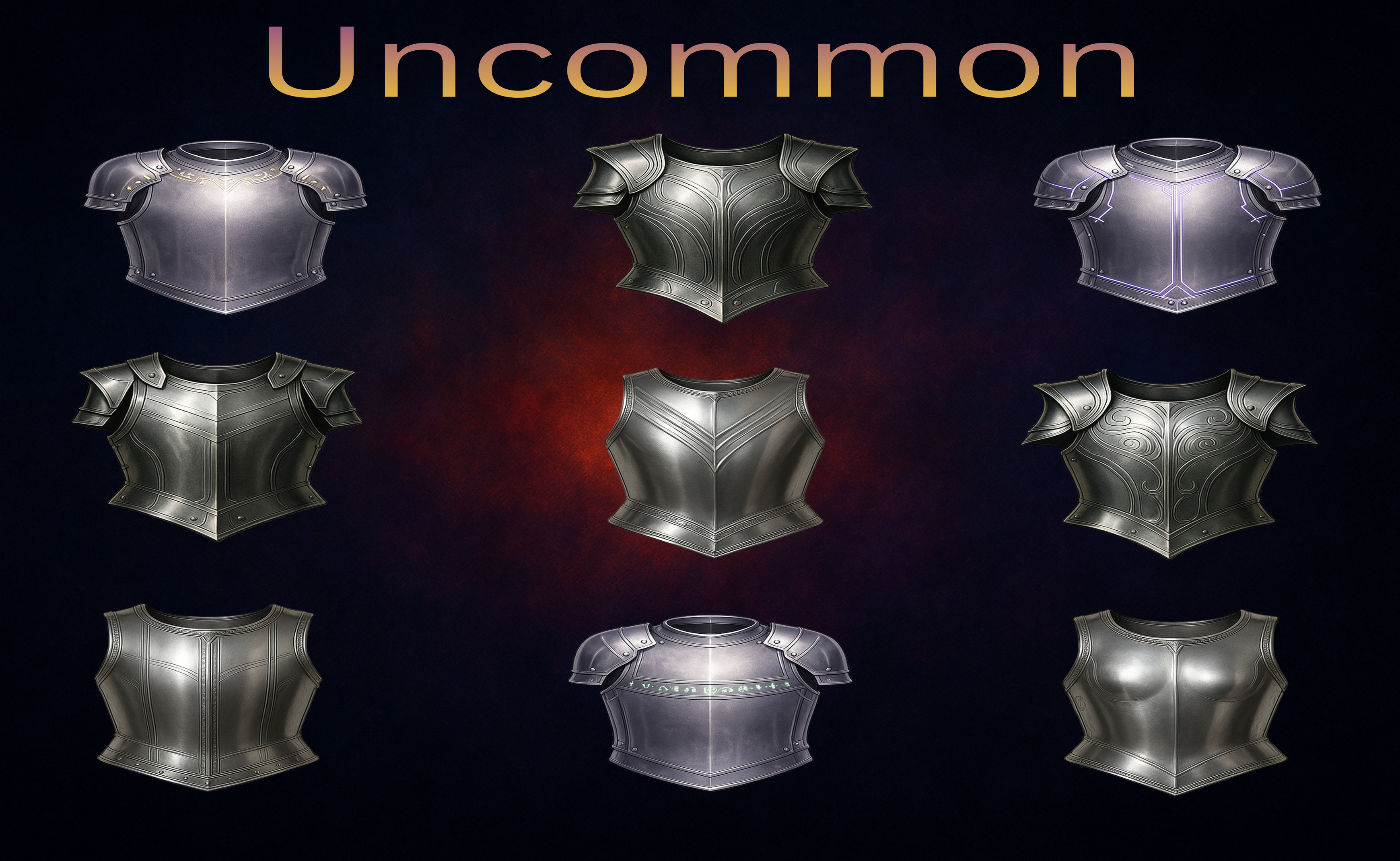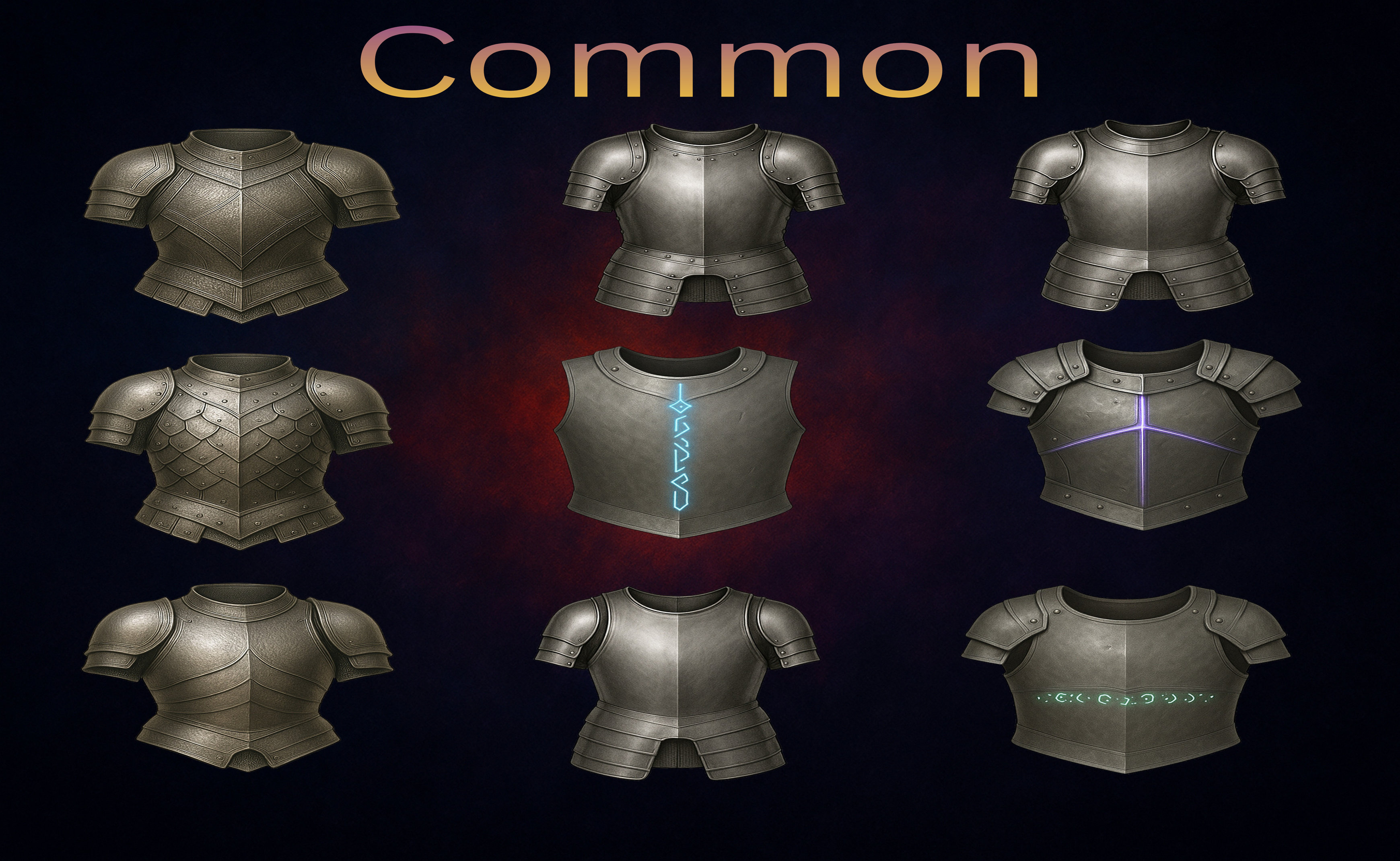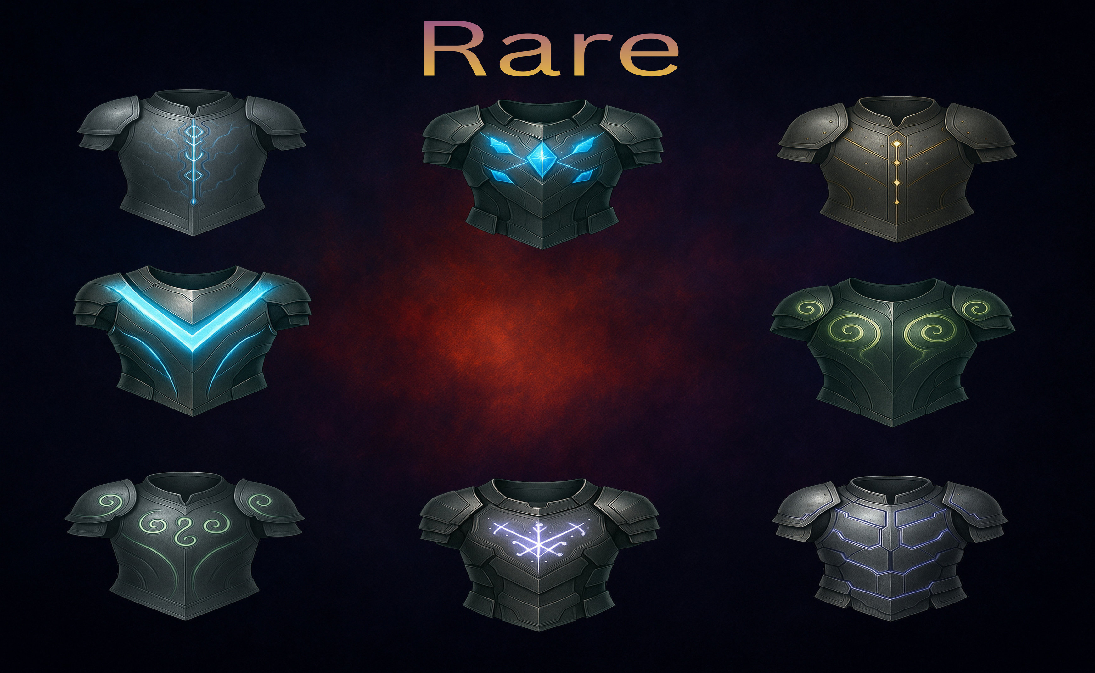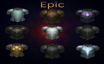 gital download game assets designed for fantasy games, RPG systems, VTT platforms and inventory UI. This pack includes 60 clean, readable, fully unified plate-armor icons across 6 rarity tiers, perfect for loot progression, character equipment menus, crafting trees and game UI. High-quality PNG files with transparent background and full-object fill ensure instant usability in any game engine without additional editing.
