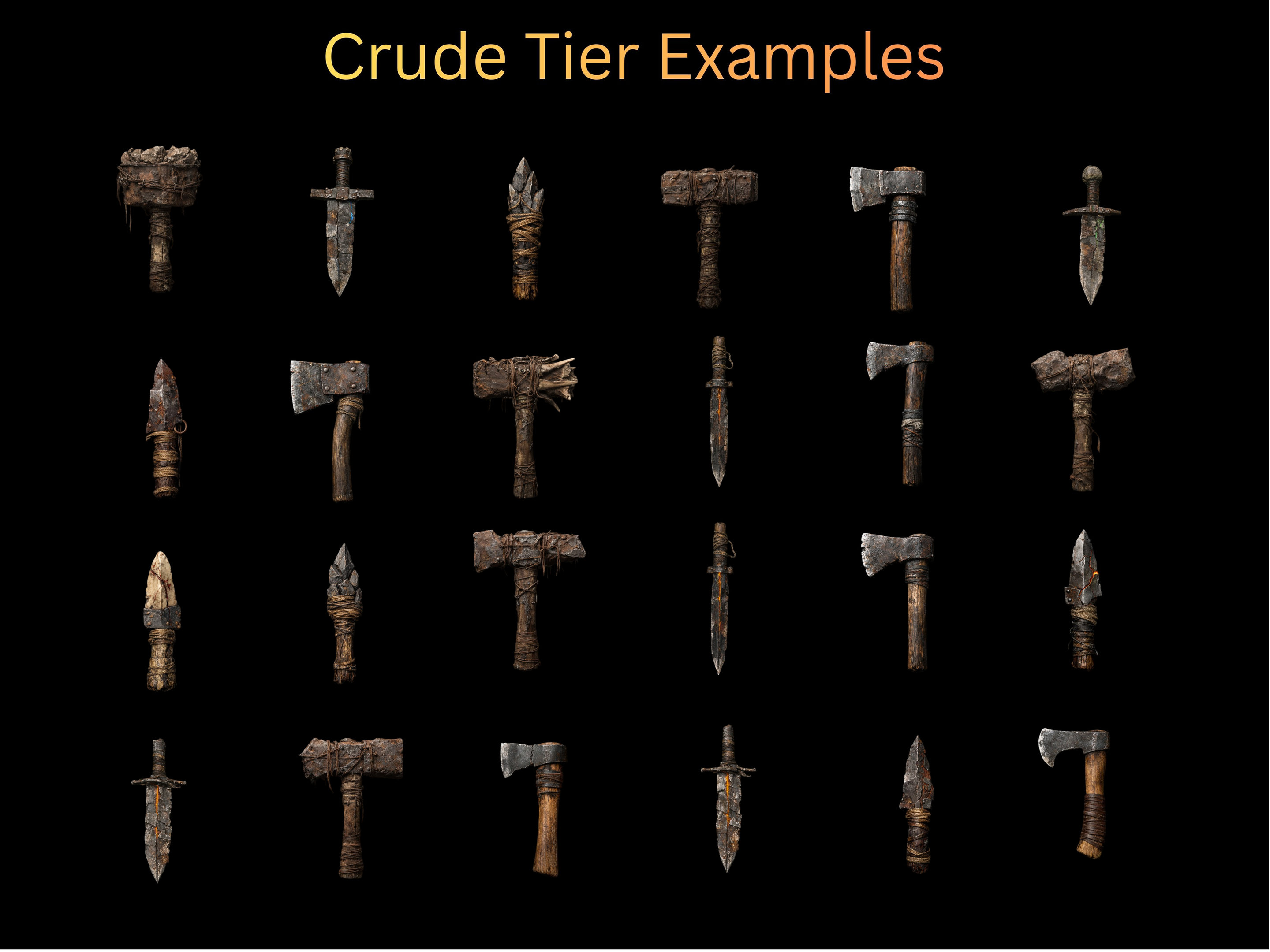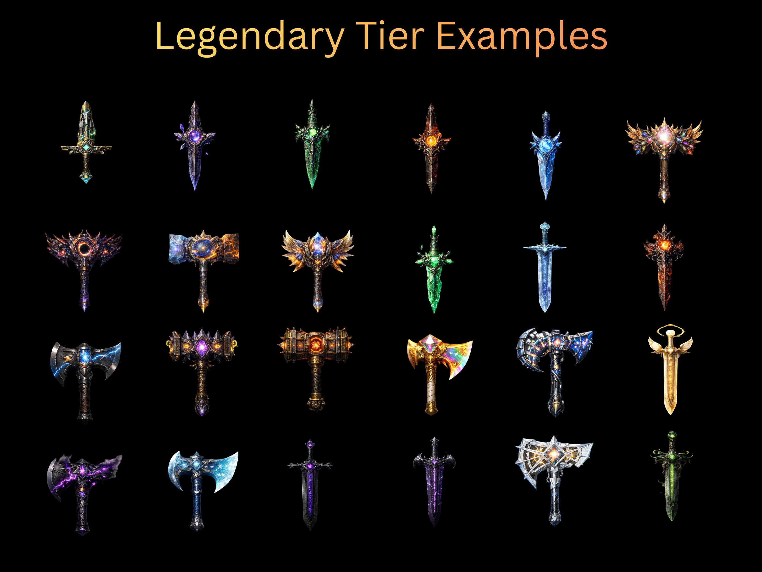This Ultimate Hand Weapon Bundle includes 300 fully unique hand-weapon UI icons, designed to support loot systems, character equipment, combat progression, and inventory interfaces in fantasy RPGs.