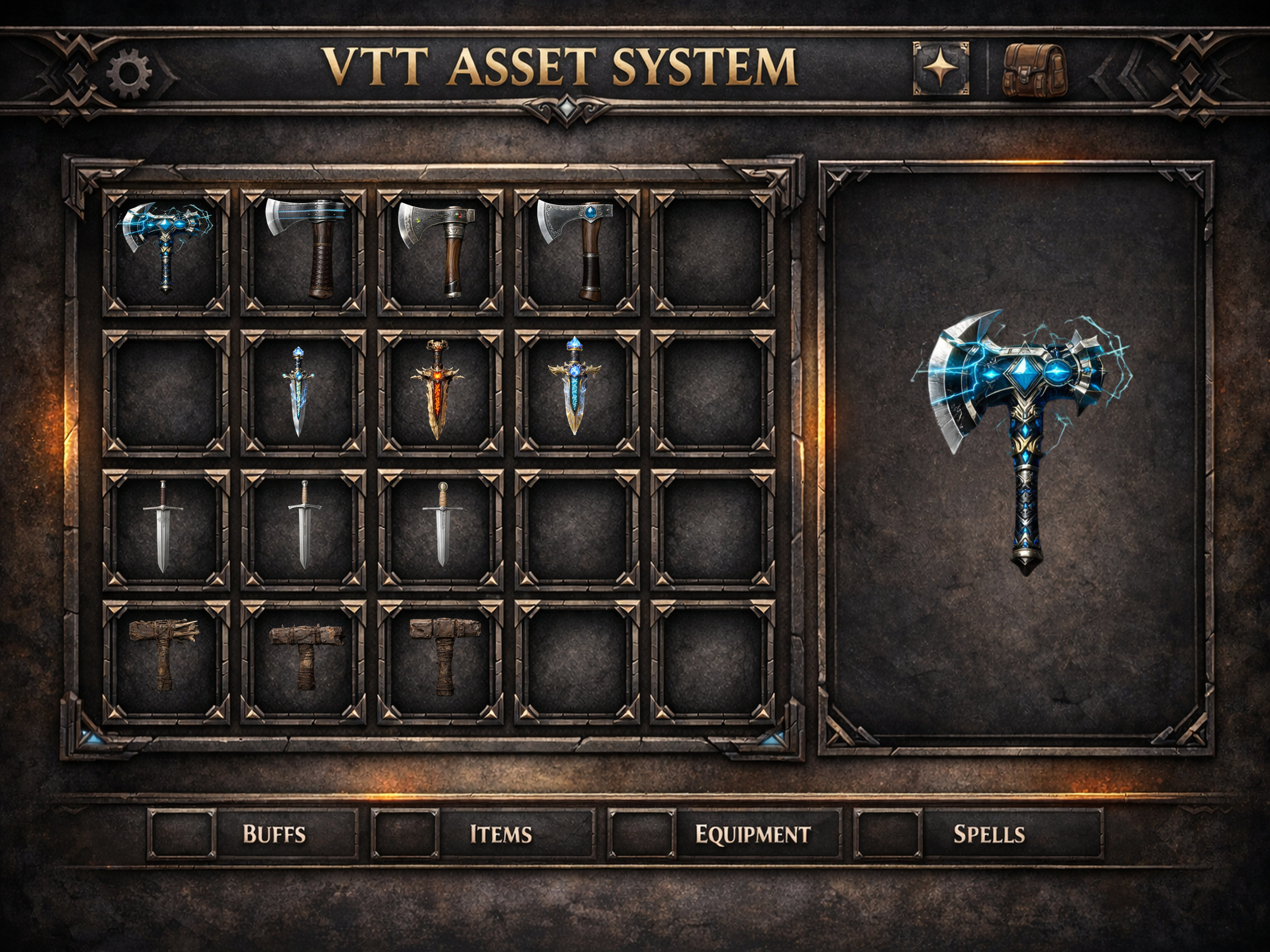 Digital Download Game Assets created for fantasy games, RPG systems, VTT platforms, and inventory UI.