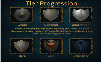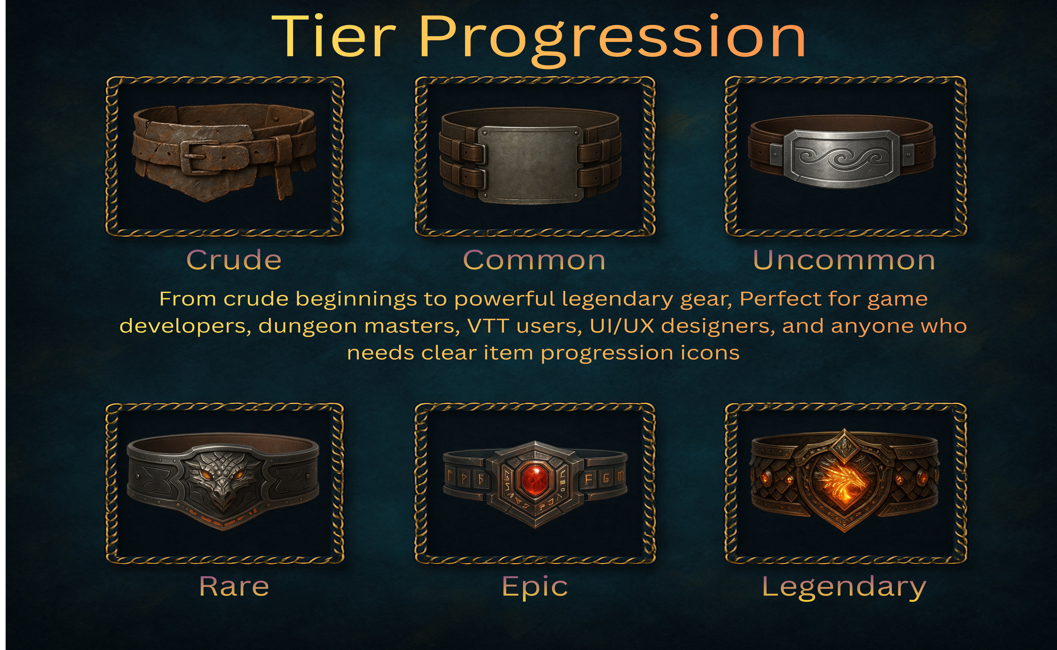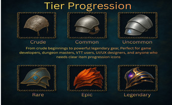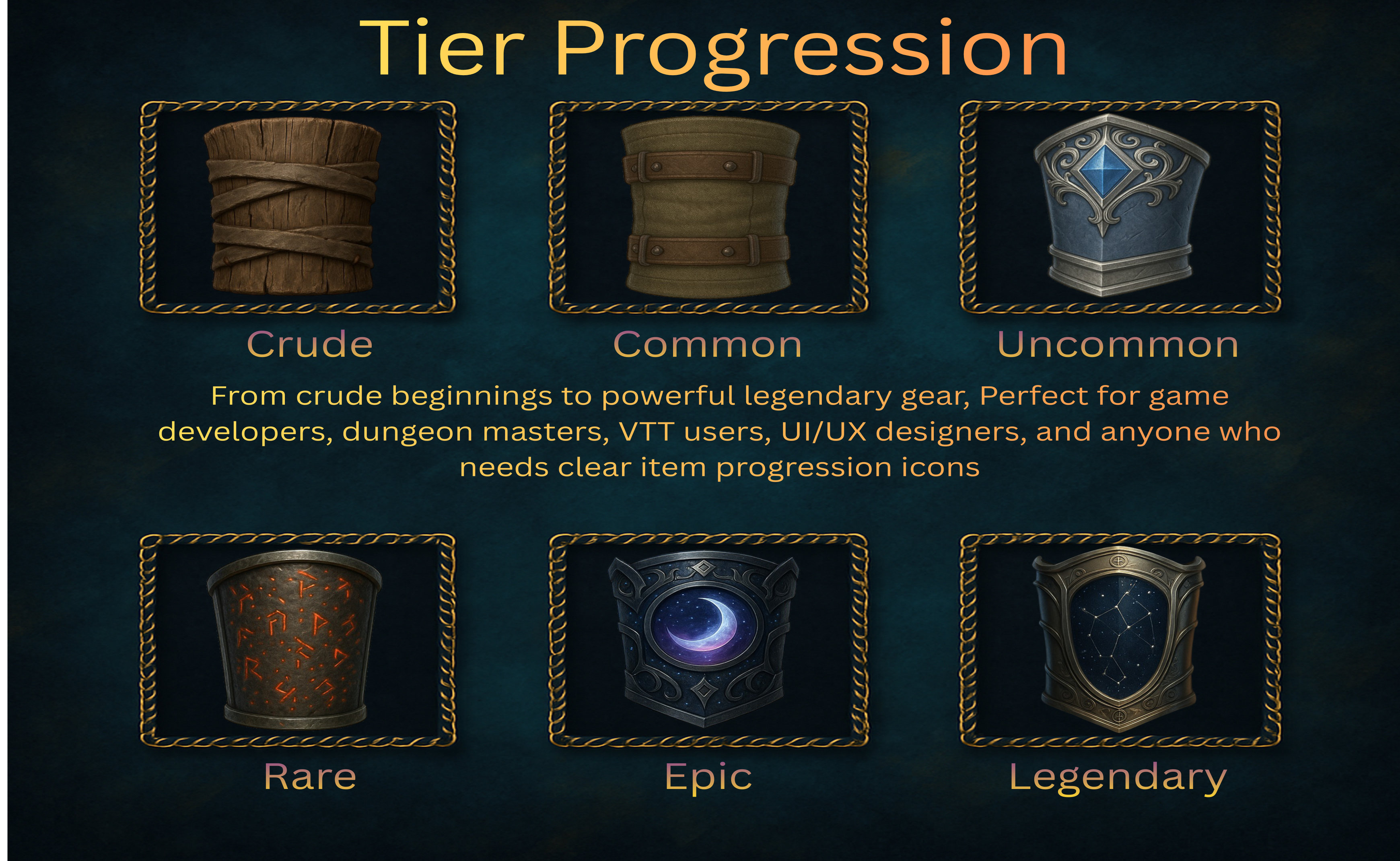 This digital asset pack is designed for fantasy games, RPG systems, VTT platforms, and inventory UI.
