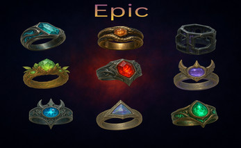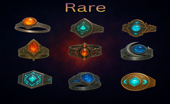 This pack includes 60+ clean, readable, fully unified ring icons, each designed as a distinctive fantasy item for loot drops, crafting systems, character equipment, or magical treasure tables.